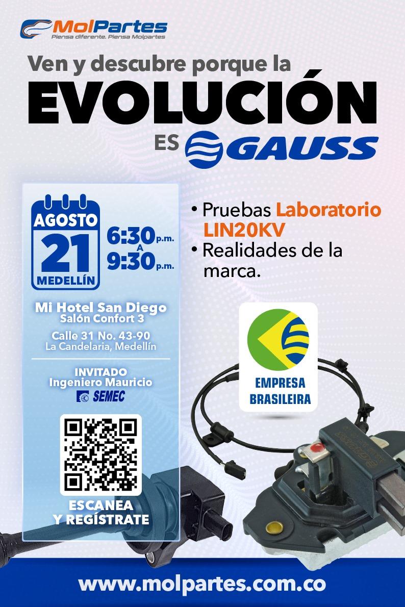 Sí vives en Medellín y te interesa saber más sobre la ingeniería automotriz, Molpartes SAS te invita a una charla exclusiva con Gauss en la CANDELARIA CL. 31 #43-90, donde podrás resolver tu dudas y mejorar tus conocimientos de la mano de ingenieros expertos sobre sobre Reguladores y el LIN20KV , además, tendrás a disposición parqueadero sin costo.